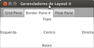 Uma das heranças do bom e velho Swing é o BorderPane. A idéia é bem simples: você coloca os componentes em regiões do painel. Essas regiões são referenciadas como: norte, sul, leste, oeste e centro.